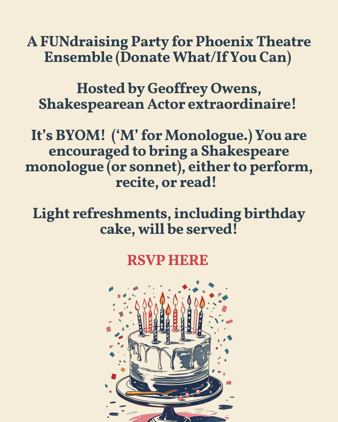 FOOD! DRINK! SHAKESPEARE! MERRY MAKING! BIRTHDAY CAKE!